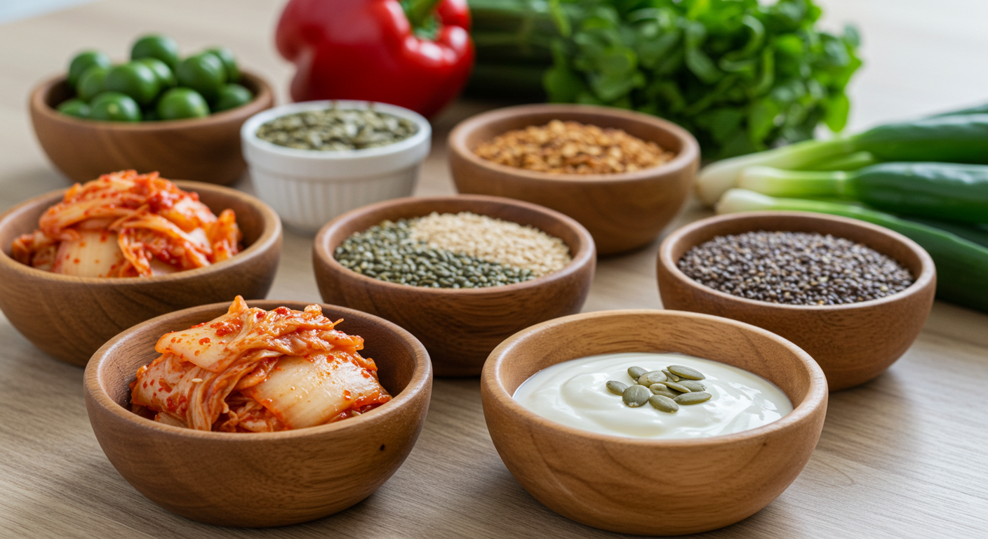 전문의의 조언: 장내 미생물 다양성을 높이는 데는 단순히 채소를 많이 먹는(프리바이오틱스) 것보다, 발효 식품을 섭취하는 것이 단기적으로 염증 개선에 더 효과적일 수 있습니다. 다양한 균주가 살아있는 '자연 발효' 식품인 김치나 케피어를 식단에 추가해보세요. 수많은 영양제보다 김치 한 조각이 더 나은 해결책이 될 수 있습니다.