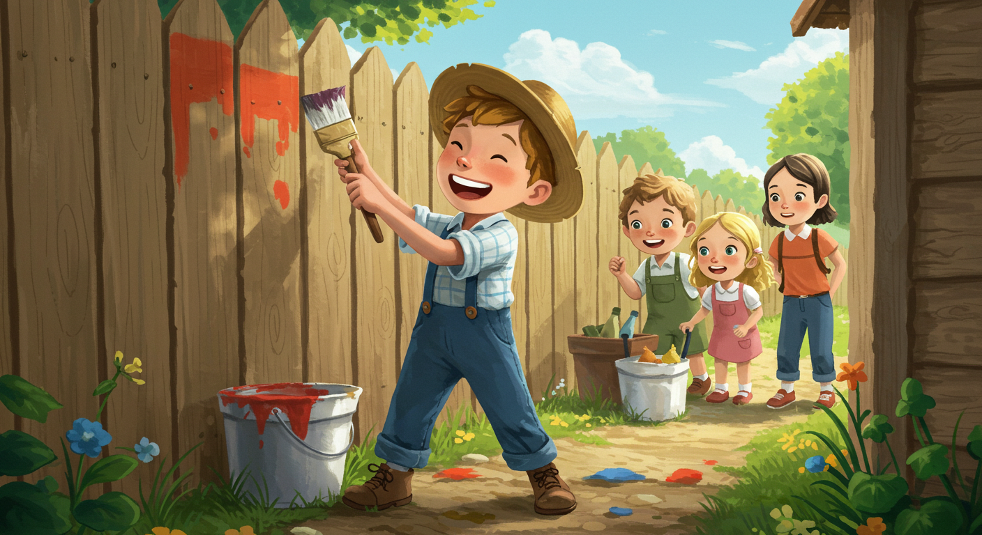 '톰 소여 효과'라는 이름은 마크 트웨인의 유명한 소설 『톰 소여의 모험』에서 유래했어요. 주인공 톰이 이모로부터 울타리에 페인트칠을 하라는 벌을 받게 되는 장면, 기억나시나요? 정말 하기 싫고 지루한 일이었죠. 하지만 꾀 많은 톰은 이 재미없는 벌을 아주 근사하고 특별한 일인 것처럼 포장합니다. 마치 아무나 할 수 없는 대단한 예술 활동인 것처럼요!