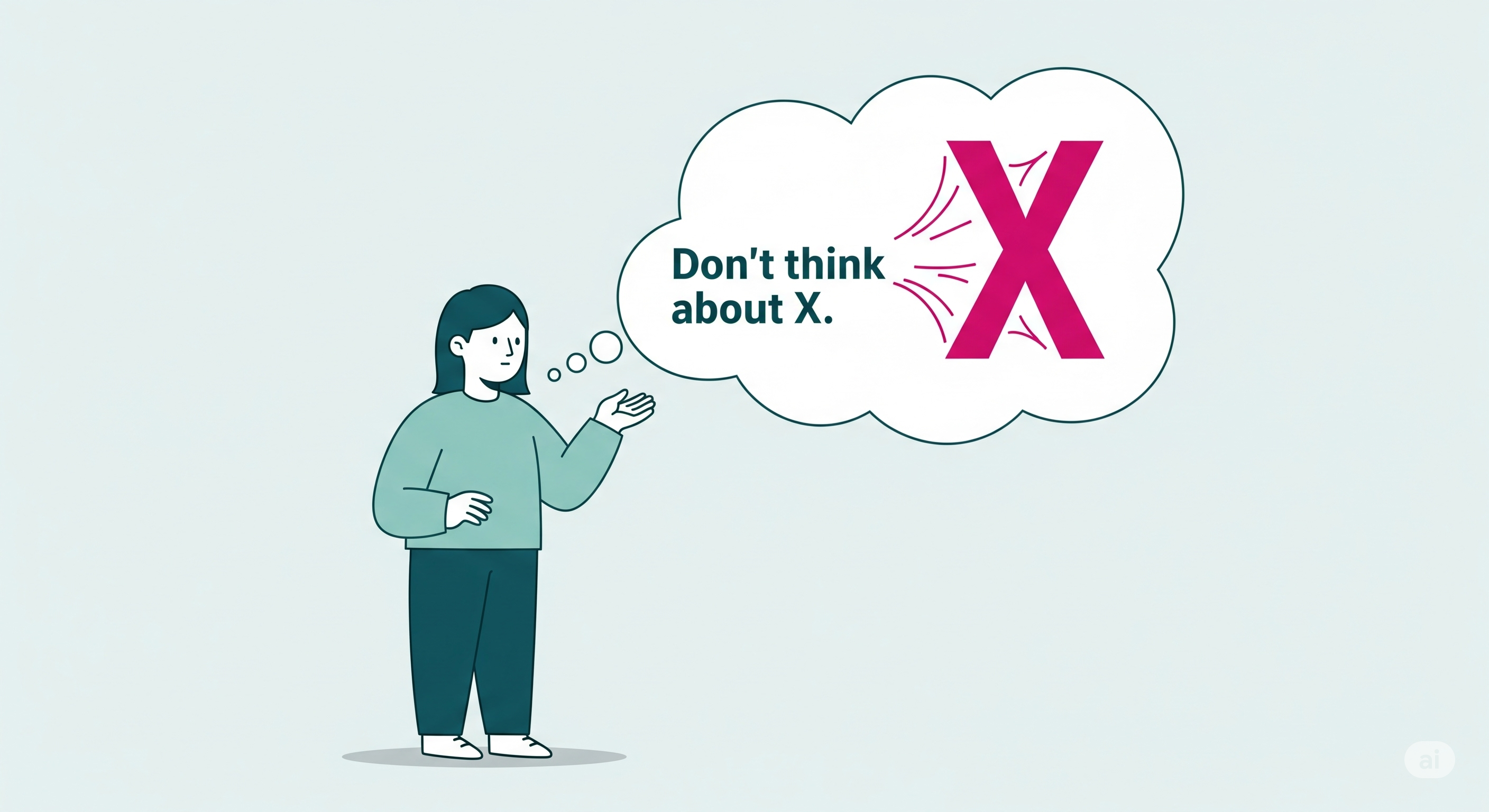 - 리바운드 효과: 어떤 생각을 억제하면 그 생각을 더 많이 하게 되는 현상입니다.