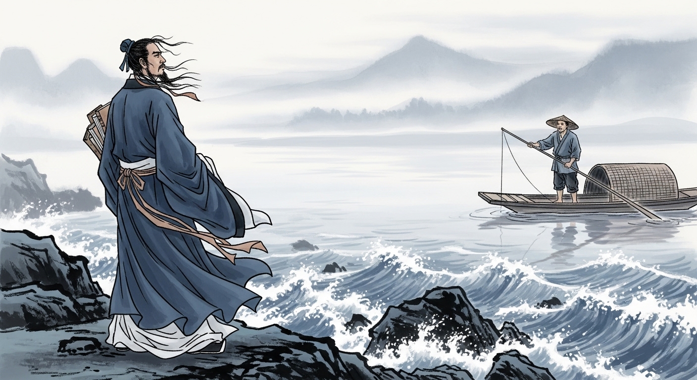 굴원은 **유가(儒家)의 지조**를 상징하고, 어부는 **도교(道敎)의 무위자연과 순응**하는 지혜를 상징한다고 해석되기도 합니다. 이들의 대화는 **불의에 맞서는 정신**과 **현실에 순응하는 처세**라는 동양 철학의 오랜 논쟁을 담고 있어요.