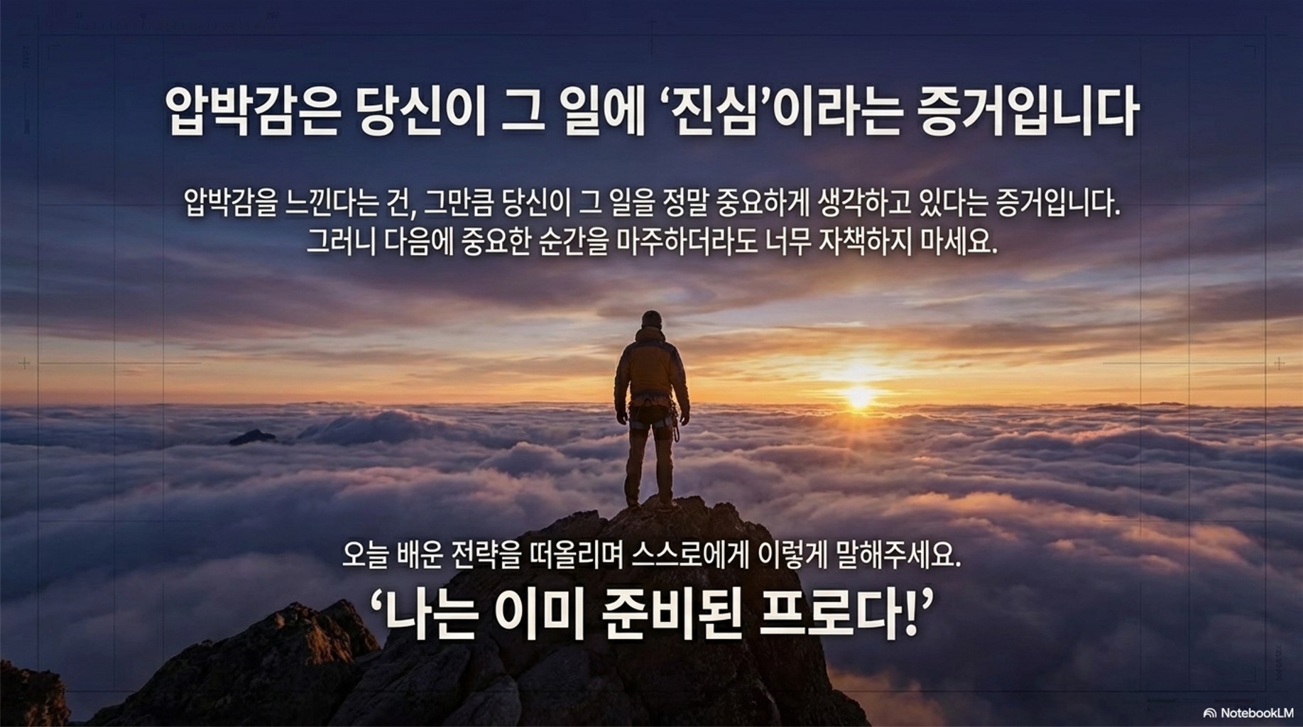 **핵심 전략:** '나는 압박을 받는다'는 생각을 '나는 흥분되고 준비되었다'는 생각으로 바꿉니다.