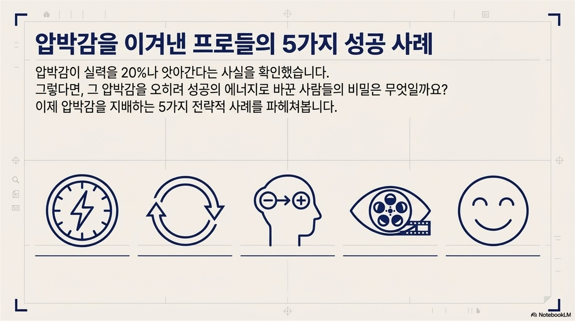 그렇다면 압박감을 완전히 무시할 수는 없더라도, 어떻게 그 영향을 최소화하고 최고의 결과를 만들어낼 수 있을까요? 압박감을 성공의 에너지로 바꾼 프로들의 5가지 구체적인 사례를 통해 그 비결을 알아봅시다.