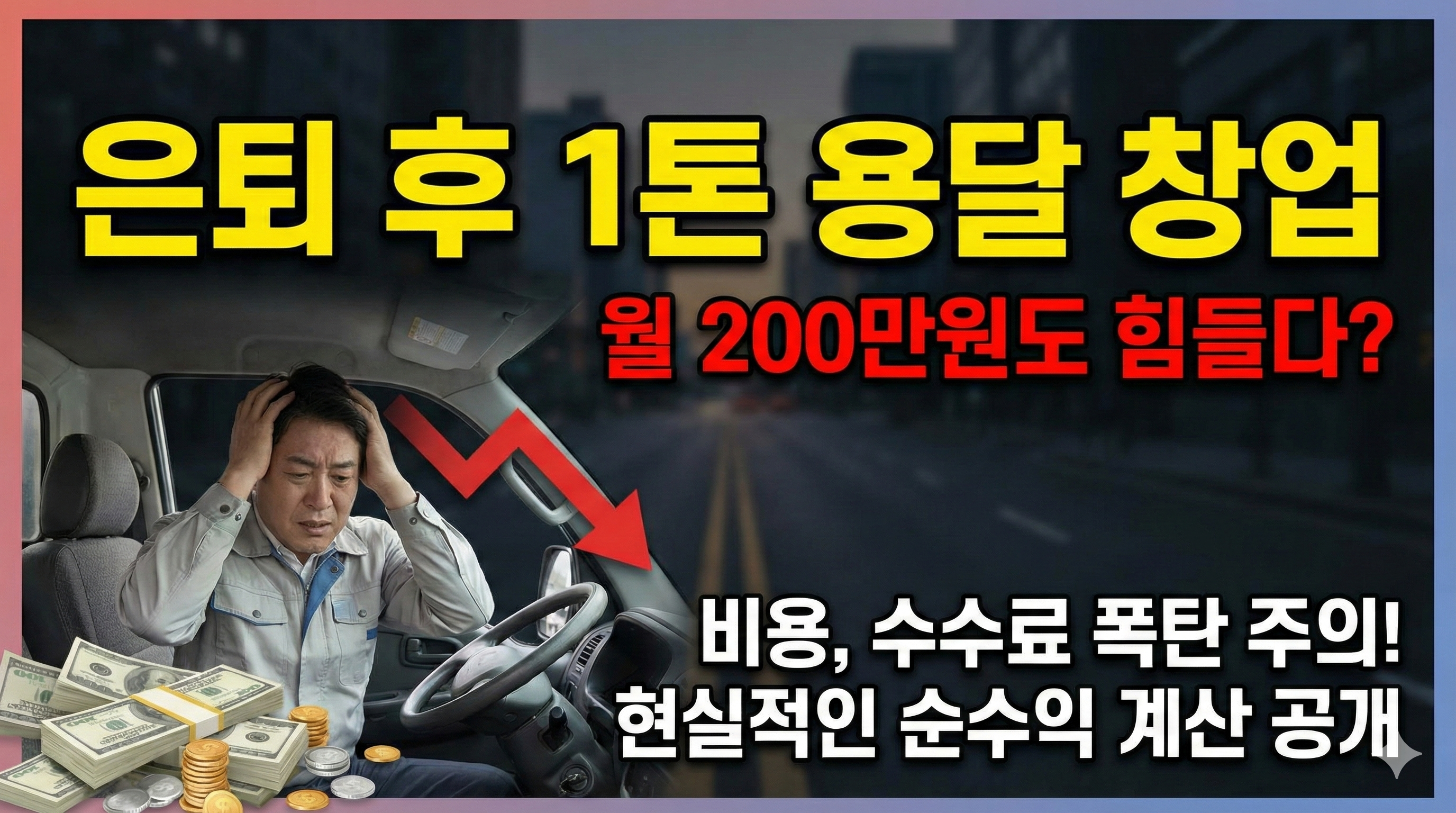 정말 열심히 뛰어서 일매출 20만 원을 꾸준히 달성해도, 실제 순수익은 세금과 4대 보험을 제외하고 나면 **200만 원대 초반**이 될 수도 있다는 냉정한 현실을 확인했습니다. 결국 1톤 용달은 초기 투자 비용은 적지만, 치열한 경쟁과 높은 중개 수수료라는 구조적인 어려움을 안고 있는 업종이에요.