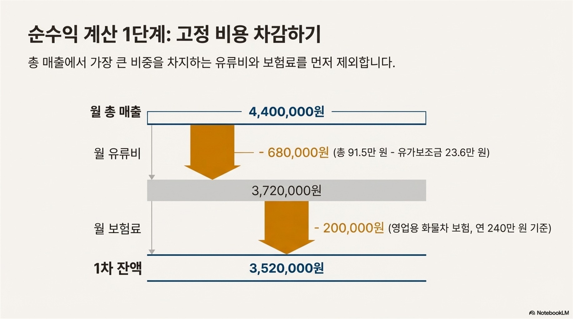 **교훈:** 매출이 높아도 비효율적인 운행이 많으면 순수익은 일반 직장인 월급보다 못할 수 있습니다.