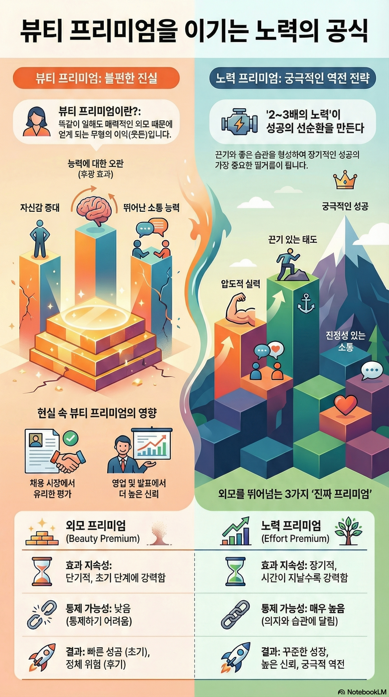 | 구분 | 외모 프리미엄 (Beauty Premium) | 노력 프리미엄 (Effort Premium) |