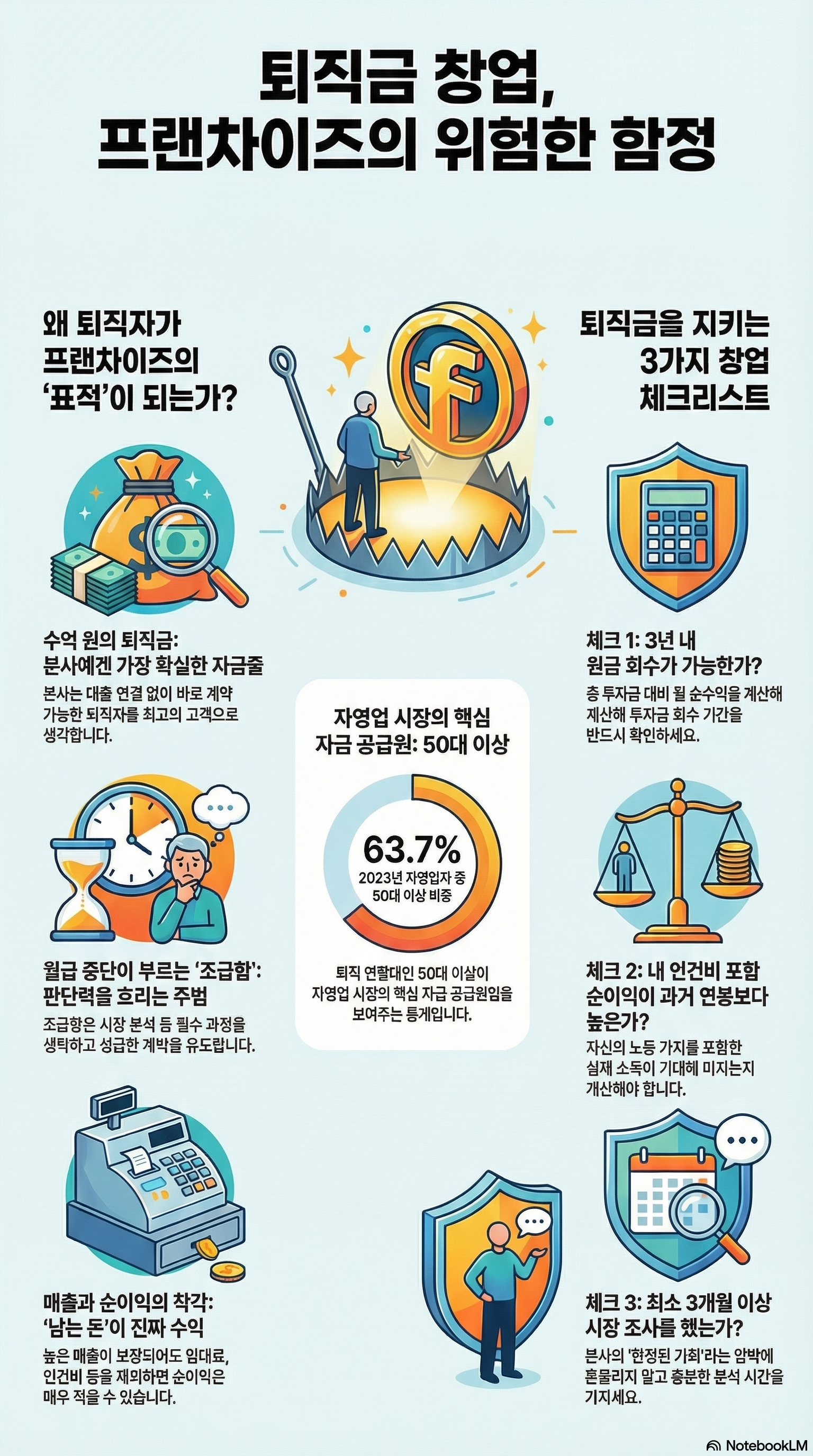 솔직히 말해서, 프랜차이즈 본사의 가장 좋은 영업 대상은 바로 회사 퇴직자분들입니다. 왜 그럴까요? 제가 수많은 예비 창업자들을 만나보고, 또 시장 데이터를 분석해 본 결과, 퇴직자들이 가지고 있는 몇 가지 특징이 본사의 '사냥감'이 되기 쉬운 구조를 만들고 있더라고요. 오늘은 이 불편한 진실과 함께, 여러분의 소중한 퇴직금을 지킬 수 있도록 구체적인 위험 사례들을 낱낱이 파헤쳐 보겠습니다. 다 읽고 나면 아마 생각이 많이 달라지실 거예요! 😊
