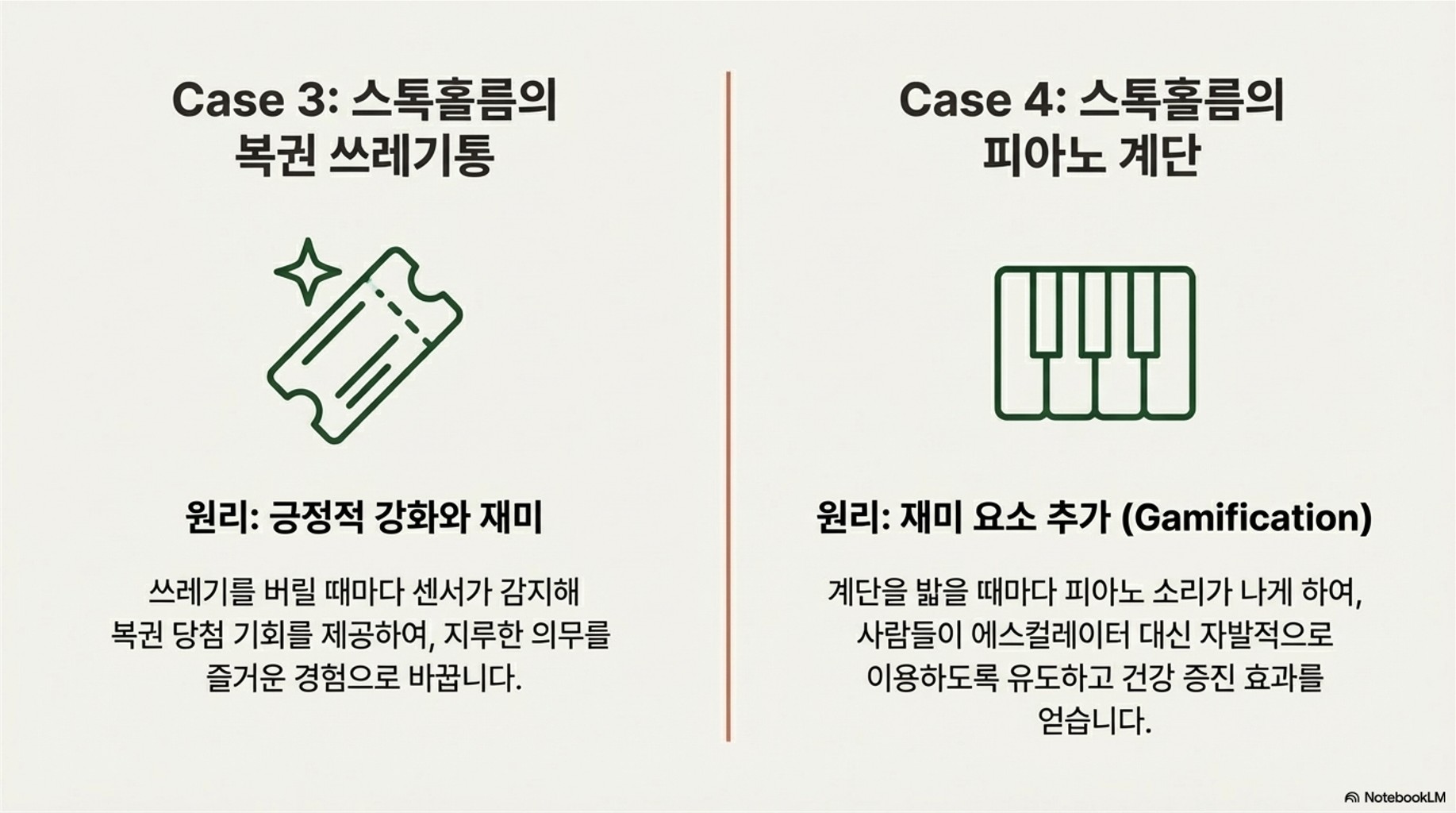 📝 사례 3: 스톡홀름의 '쓰레기통 속 복권' (긍정적 강화)