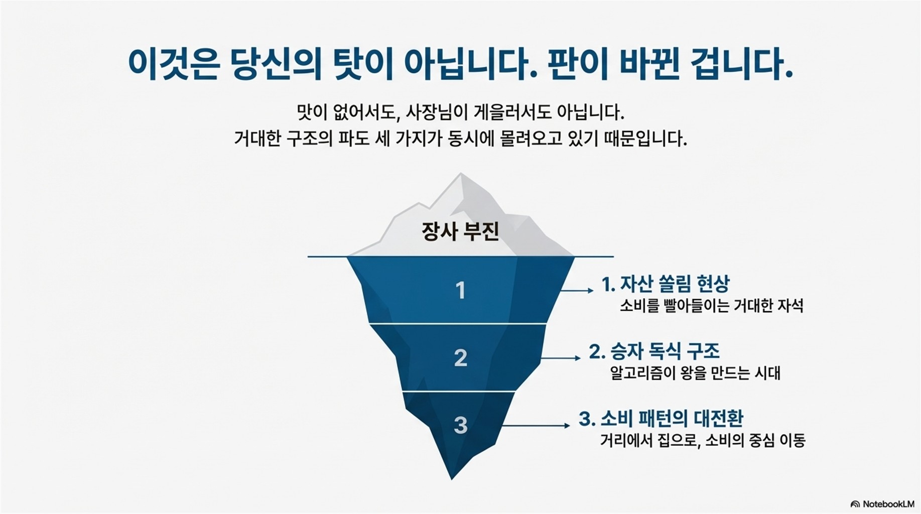 지금 자영업이 어려운 건 맛이 없어서도, 사장님이 게을러서도 아닙니다. 거대한 구조의 파도 세 가지가 동시에 몰려오고 있기 때문입니다. 그렇다면 이 환경에서 살아남으려면 어떻게 해야 할까요?