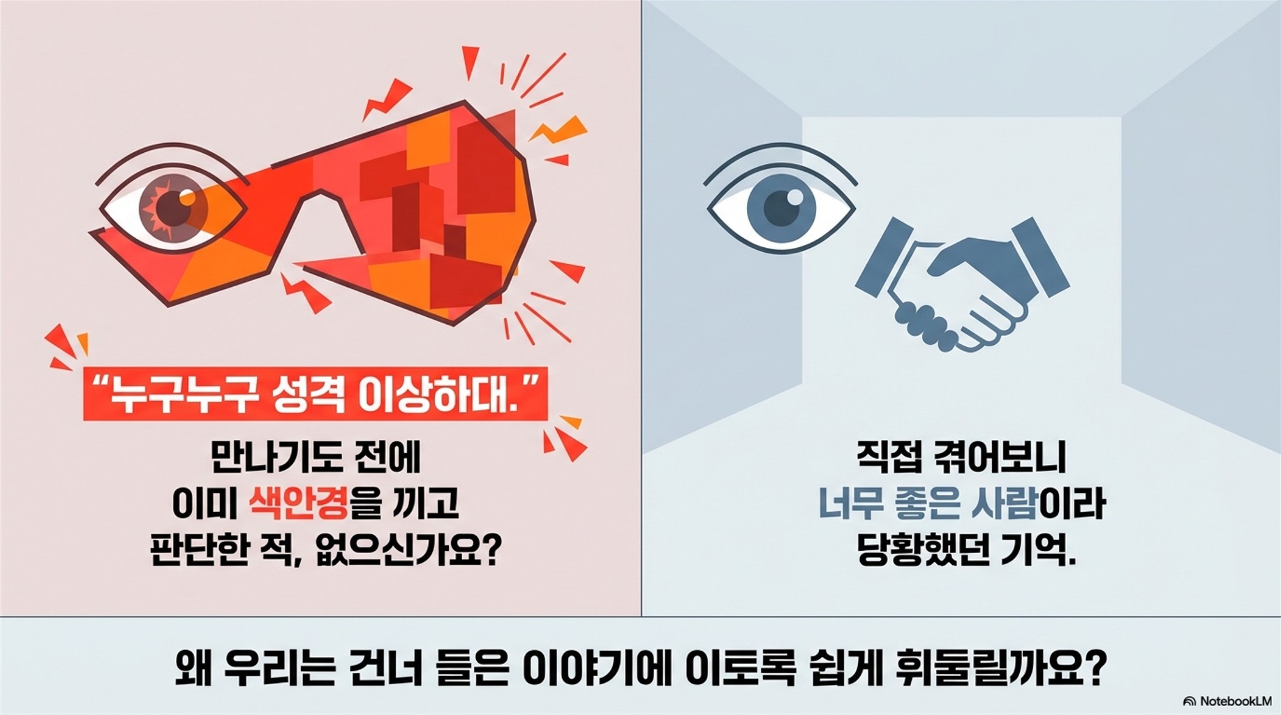 여러분, 혹시 친구에게 "누구누구 성격 진짜 이상하대"라는 말을 듣고, 그 사람을 만나기도 전에 이미 색안경을 끼고 보게 된 경험 있으신가요? 솔직히 저도 그런 적이 꽤 많거든요. 😅 나중에 직접 겪어보니 생각보다 너무 좋은 사람이라서 당황했던 기억도 있고요. 왜 우리는 직접 보지 않은 정보에 그토록 쉽게 휘둘리고, 또 건너 건너 들은 이야기는 유독 더 자극적이고 부정적일까요? 오늘은 이 흥미로운 '정보 왜곡'의 비밀을 심리학적 실험과 함께 아주 쉽게 풀어보려고 해요. 😊